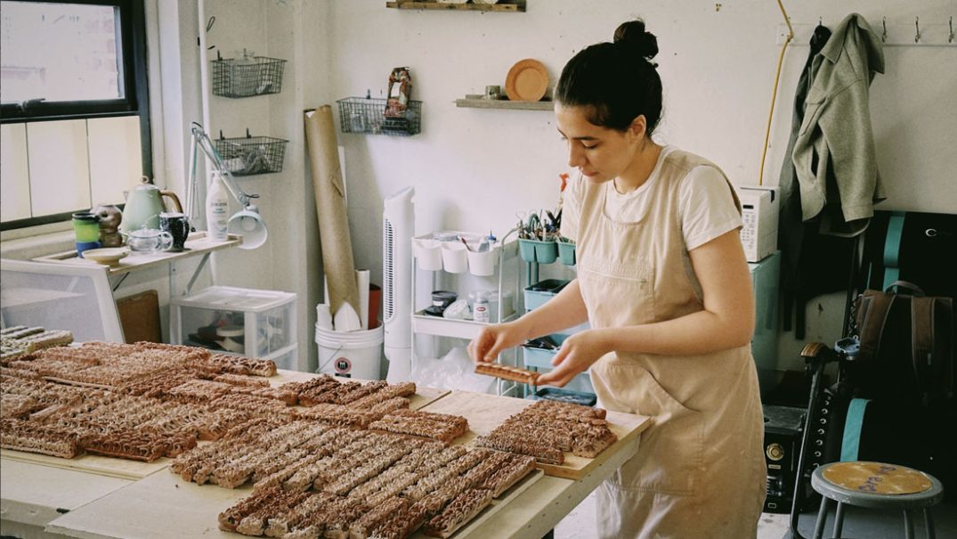 Maedeh Tafvizi is an Iranian-born ceramic artist, educator, and material researcher whose interdisciplinary practice explores the intersections of grief, ritual, and spatial memory through clay. Raised in Isfahan, she draws inspiration from Persian architecture, Islamic ornamentation, and ancestral weaving practices to reimagine traditional motifs—such as Zillo tapestry patterns—into sculptural forms using both ancient techniques like Egyptian paste and contemporary tools like 3D clay printing.