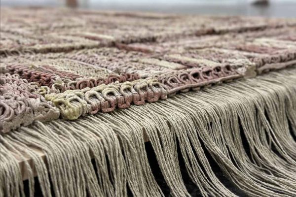 - Maedeh Tafvizi, Grief Resonance, 2024. 3D-printed ceramic and yarn installation, Convention Center, Providence